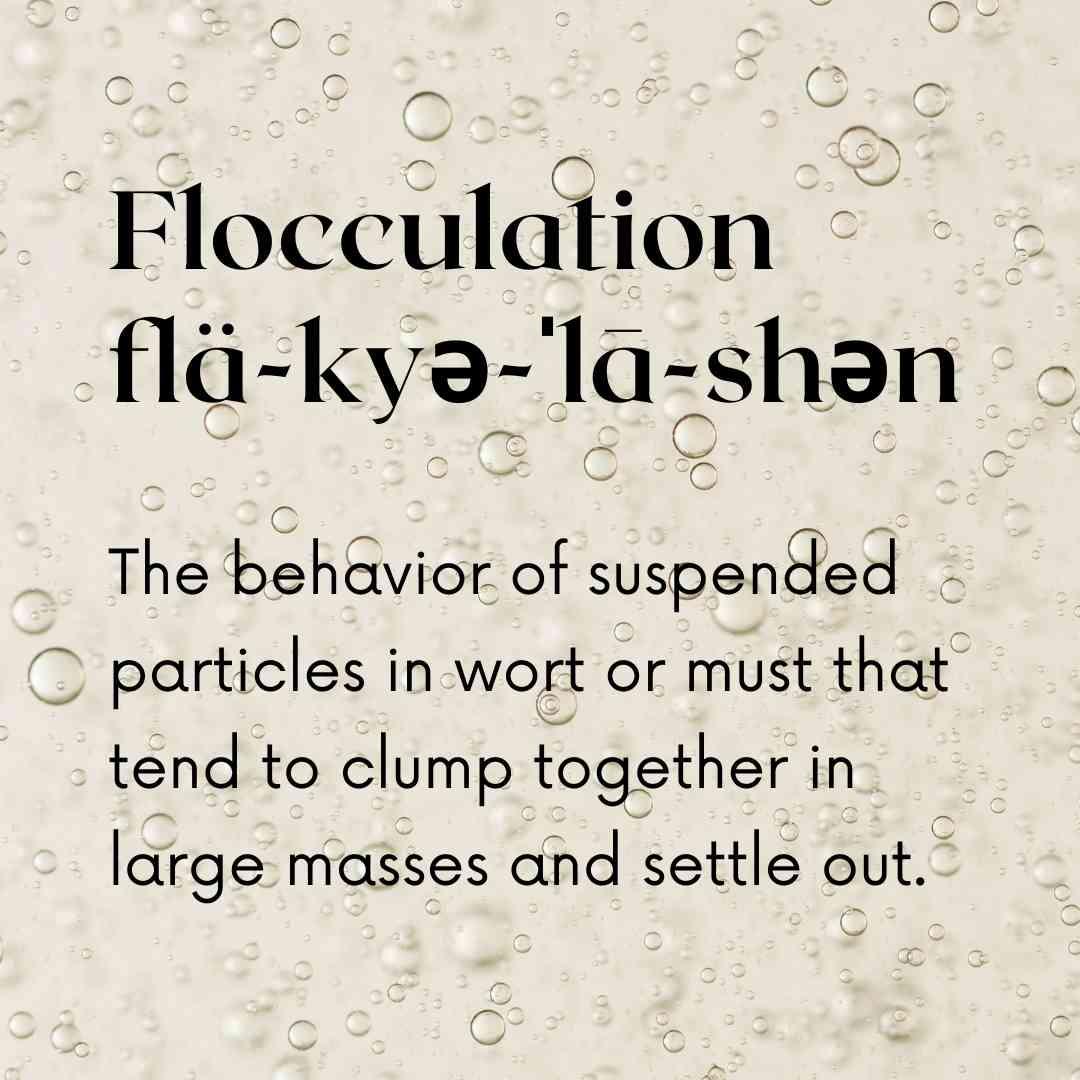 Flocculation - The behavior of suspended particles in wort/must that tend to clump together in large masses and settle out.