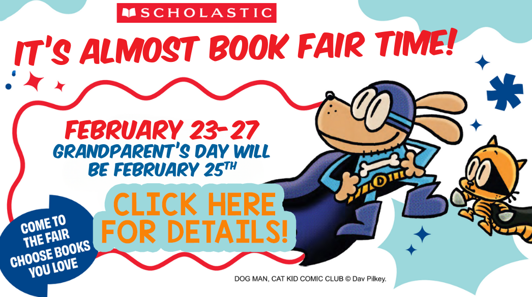 Monday, Feb 23-Friday, Feb 27: Scholastic Book Fair