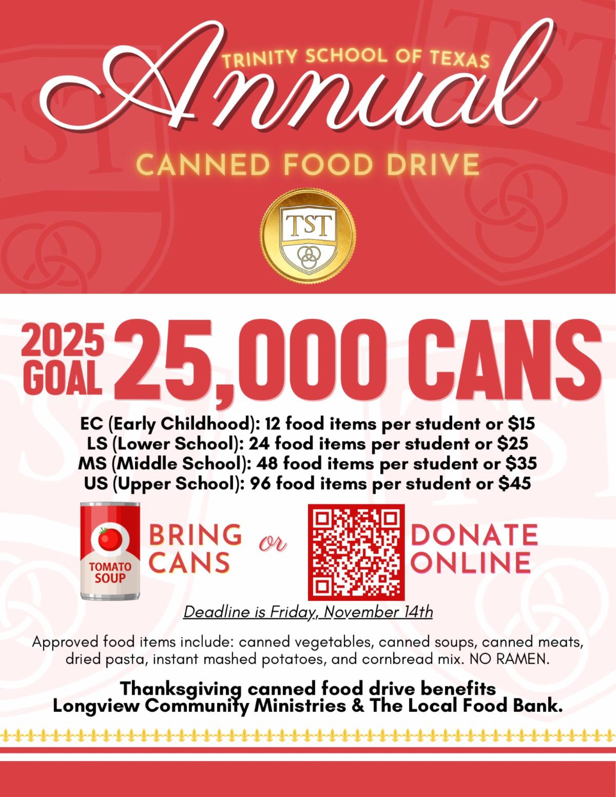 Tuesday, November 18: Canned Food Service at Trinity Episcopal Church