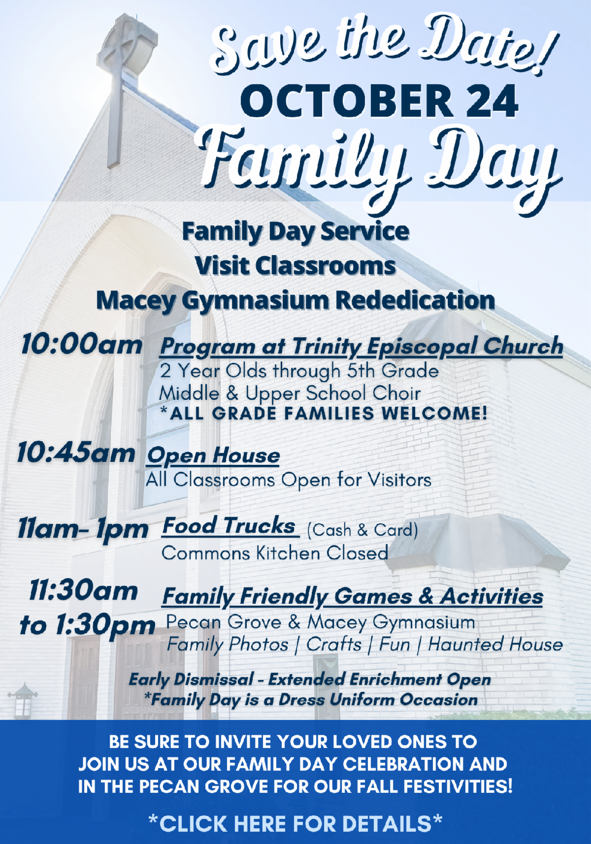 Friday, October 24: Family Day - Dress Uniform REQUIRED (Early Dismissal - Extended OPEN)