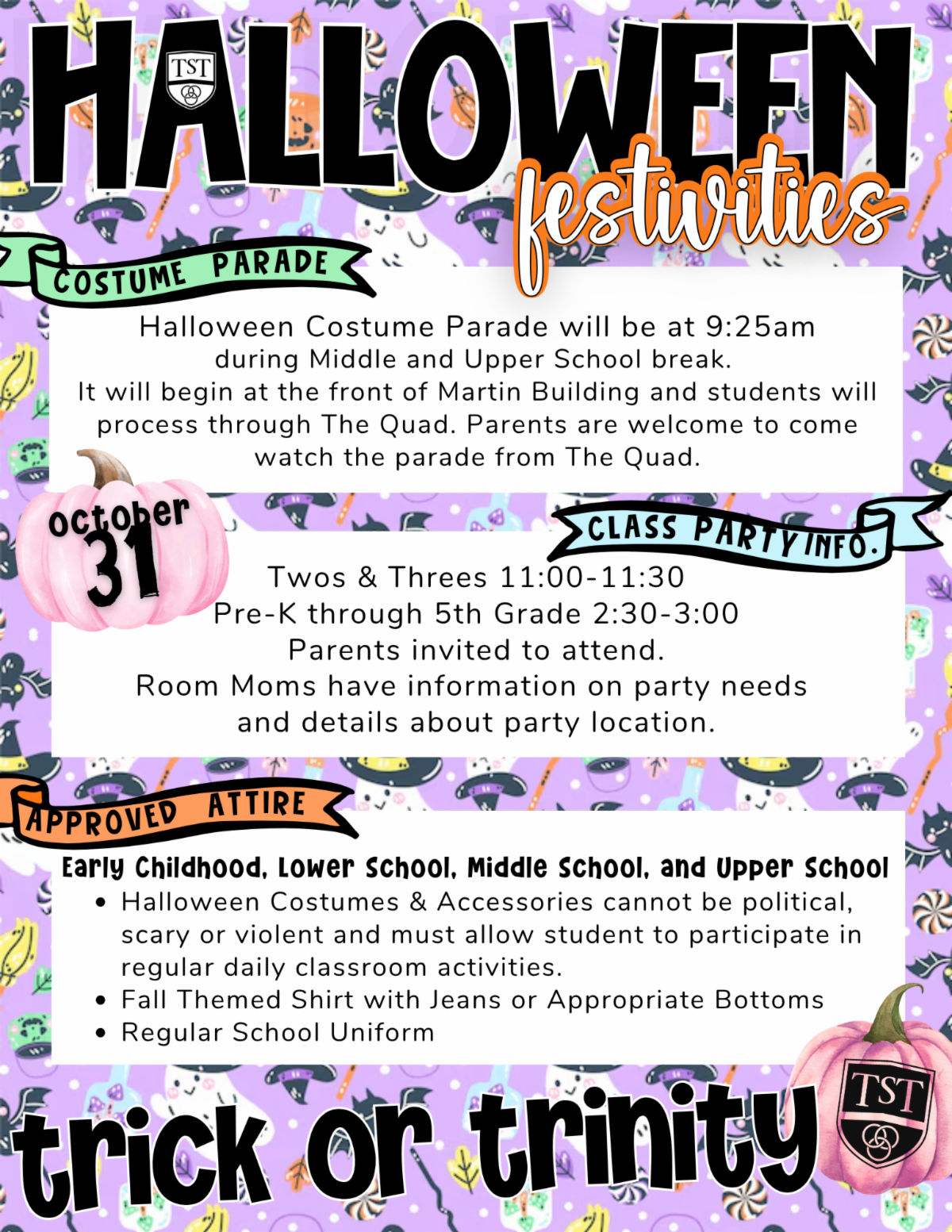 Friday, October 31: All School Halloween Costume Parade + EC/LS Halloween Parties