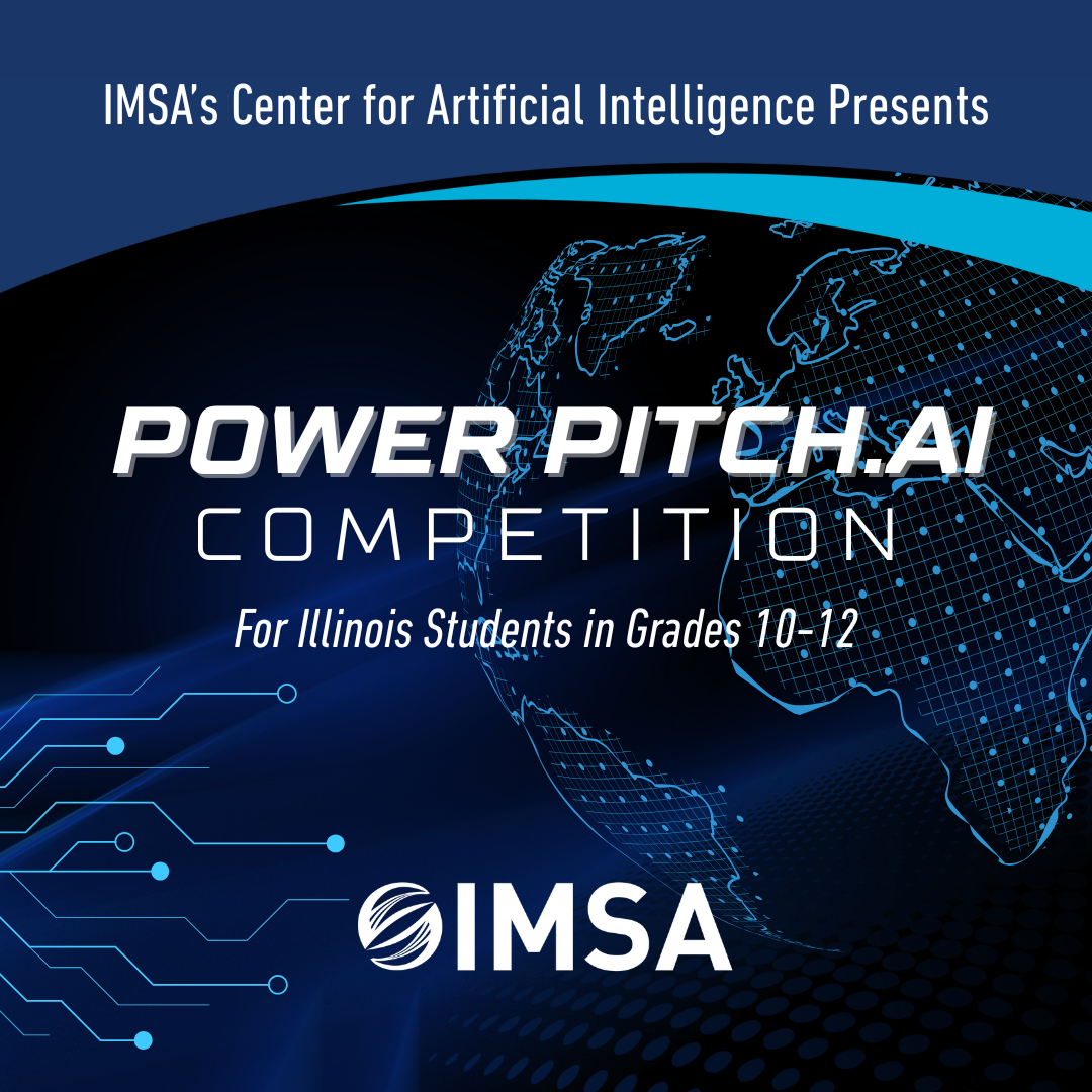 The IMSA Center for Artificial Intelligence invites Illinois high school students to participate in the second annual Power Pitch.AI Competition. This event challenges young innovators to pitch creative business ideas that integrate artificial intelligence. Participants will develop their entrepreneurial, design thinking, and problem-solving skills while competing for recognition as emerging leaders in innovation and technology. Any Illinois high school student is invited to register!