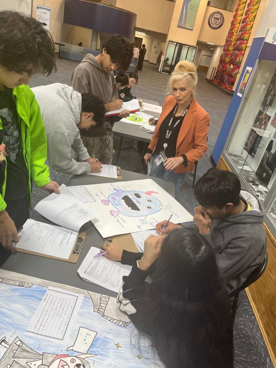 Last week, French 2 students in Madame Kwiatkowski's class put both their advanced language skills and medical vocabulary to the test! Each student designed a unique “monster” featuring various medical maladies and injuries labeled in French. Acting as doctors, students rotated around the room to examine their classmates’ creations, completing medical charts where they recorded symptoms (il/elle a mal…), described how the injury occurred, and offered written medical advice and treatments (il faut…, je recommande…).