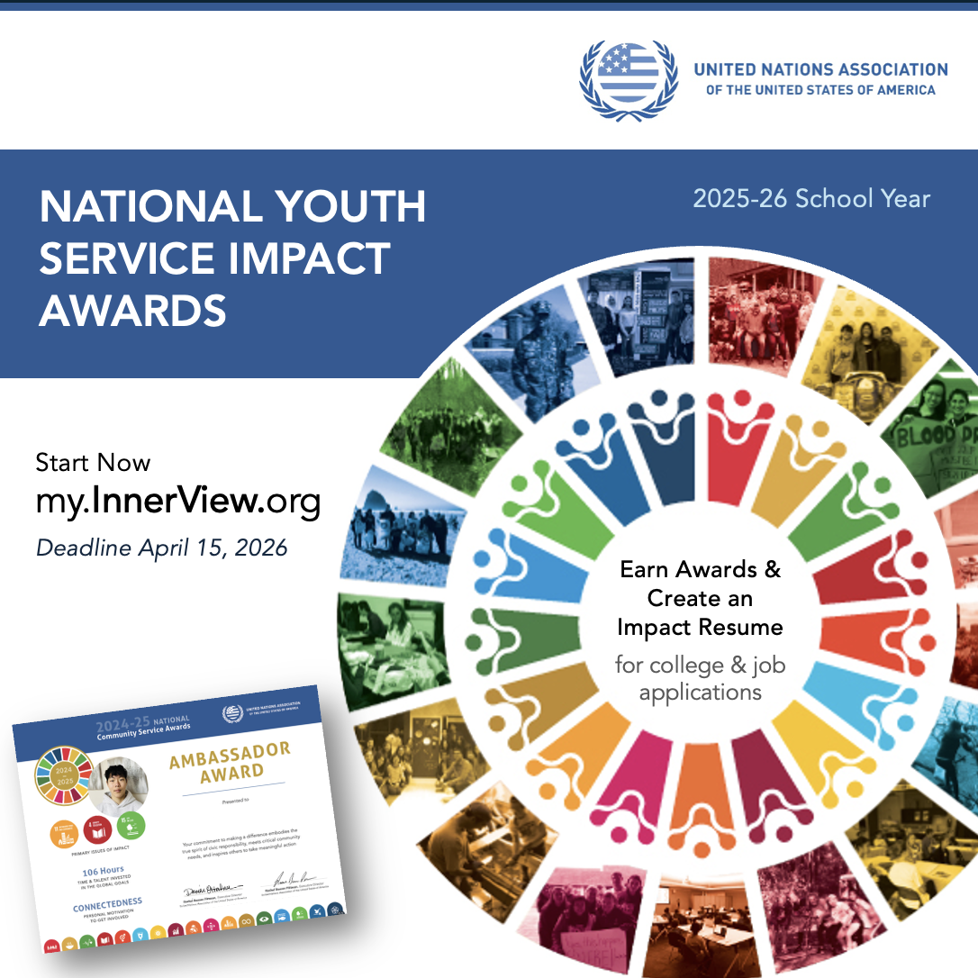 | | | A collection box will be located in the Health Office after Thanksgiving break through January 7, 2026. | | | The National Community Service Award | | The National Community Service Award applications from the United Nations Association have been released! | | | |