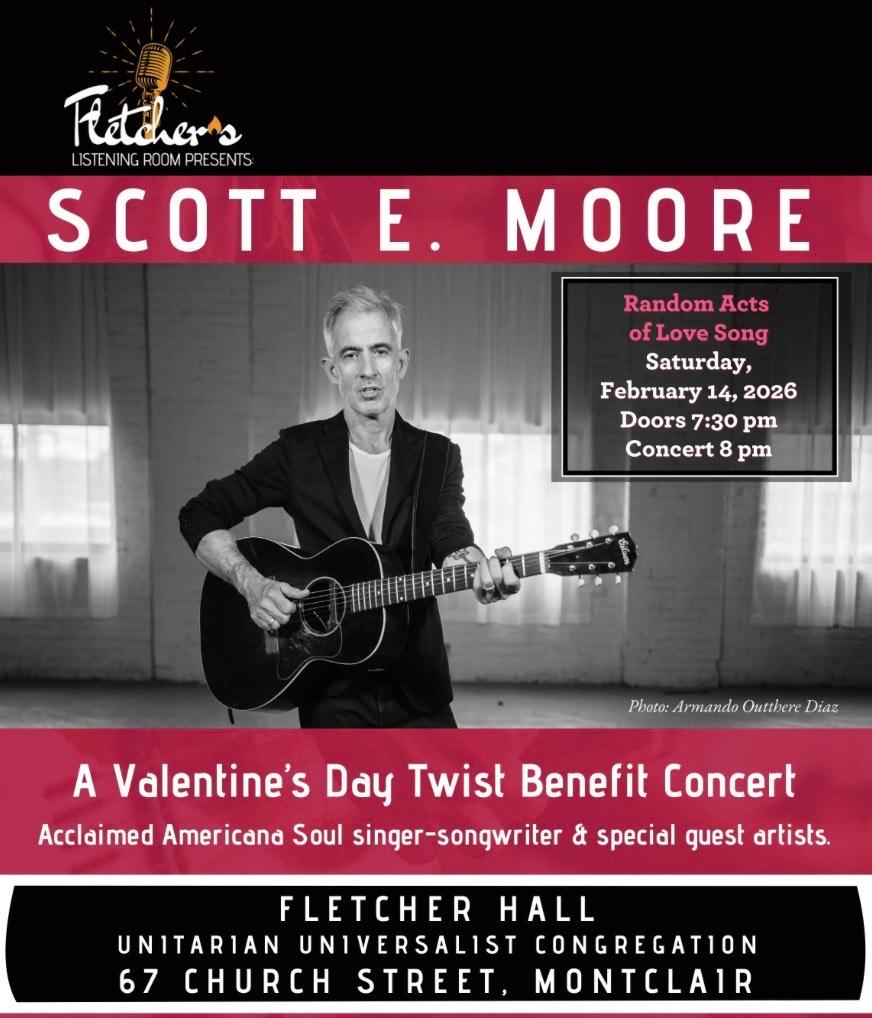 A perfect evening for those who love music, believe in love, but may not love the idea of an obligatory commercial ritual about love. Americana Soul artist and singer-songwriter Scott E. Moore will explore love songs, including eclectic diverse classics and SEM originals, all served up in a musical cocktail of blues, country, jazz and R&B.