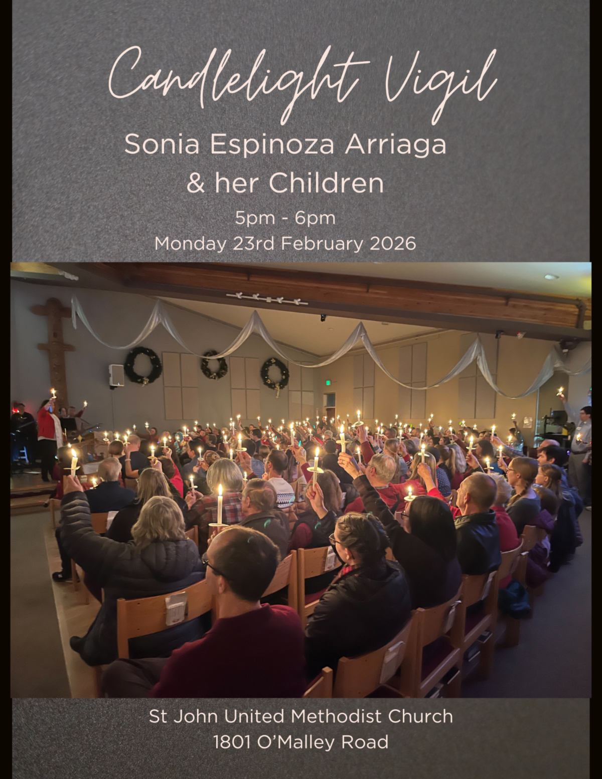 Sonia Espinoza Arriaga and her three children were arrested and detained by the U.S. Immigration and Customs Enforcement agents. The youngest is 5 years old, and in Kindergarten. There is now a community-wide Candlelight Vigil in Anchorage scheduled for Monday, Feb 23rd from 5-6 pm at St. John United Methodist Church.