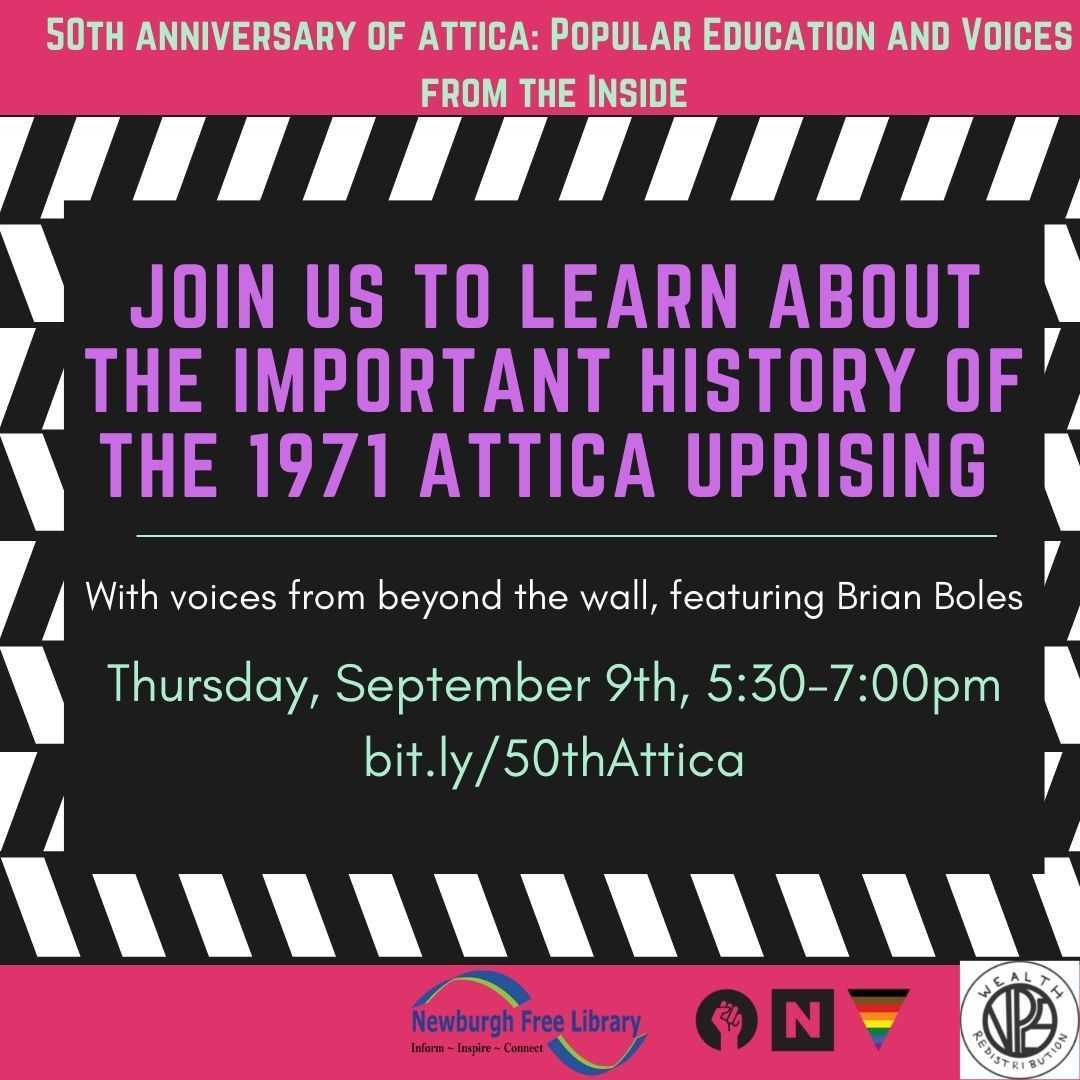 There are several events to commemorate the 50th anniversary of the rebellion at Attica Prison that began on September 9, 1971. See www.atticaisallofus.org
