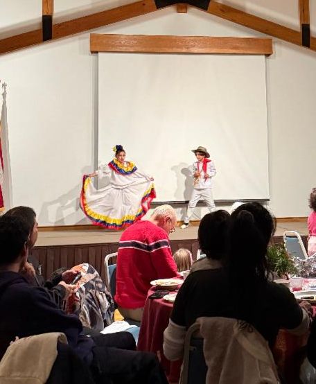 | | Photos from recent gathering in the common room at The Terraces for a service of Eucharist followed by tea and socialization for residents and Eucharistic volunteers. Left: Janet Winter expresses her gratitude for the Terraces Ministry and for the lovely tea held on December 3. Center: A sample of the offerings while parishioners chat in the background. Right: Jane Affleck greets Ruth Campbell. | | Photos from Dia de las Velitas Supper and Candle Blessing held on Friday, December 5. After a delicious potluck dinner, attendees were treated to Columbian dancing. | |