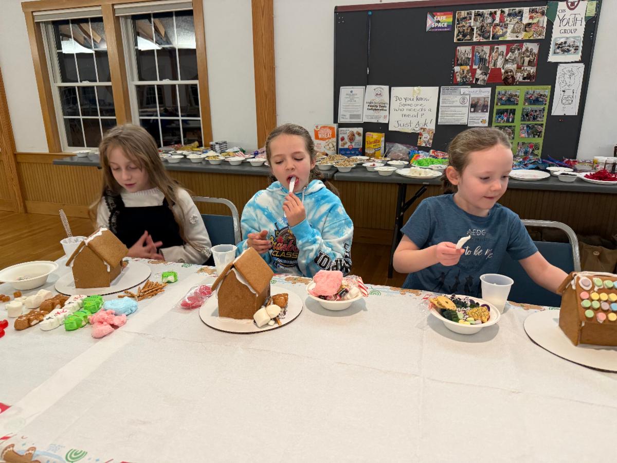 The Church School had a wonderful evening creating gingerbread houses after we rehearsed for our annual Christmas Pageant which will take place at 4:00 on Christmas Eve. Any youth interested can join in by showing up at 3:00 on Christmas Eve in the Gathering Room.