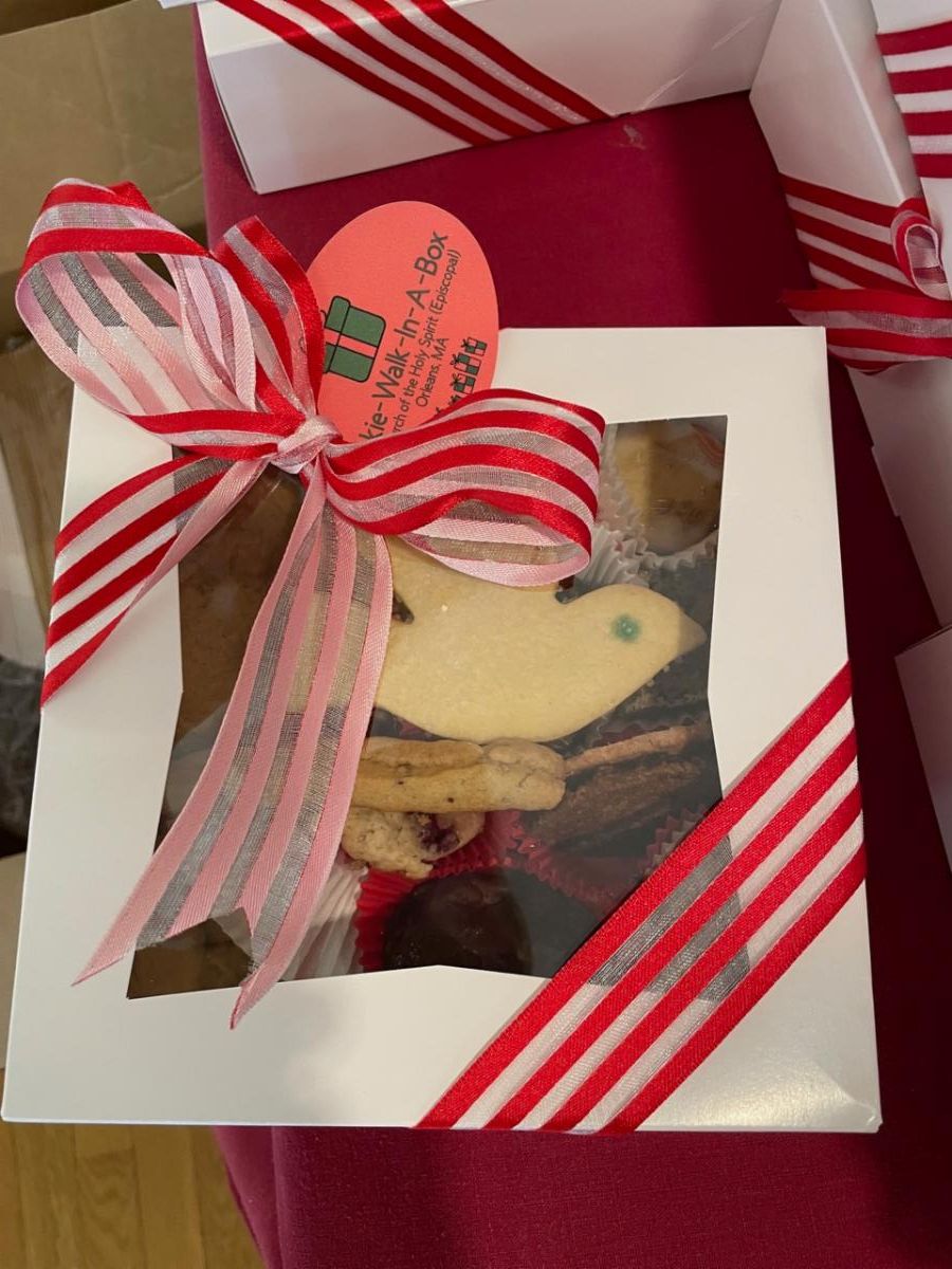 Photos: Bottom left: Box of delicious cookies for sale at our Food Table.