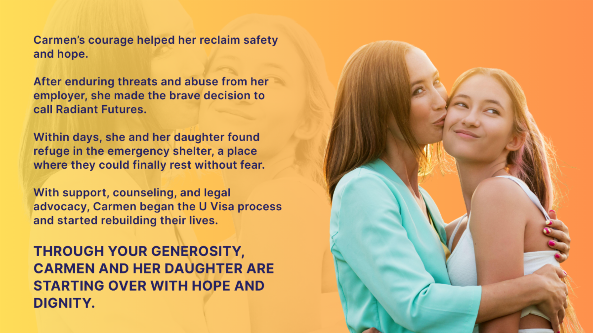 Safety is not just about leaving violence. It is about rebuilding lives with stability and hope. That is why Radiant Futures surrounds survivors with wraparound services.