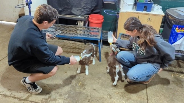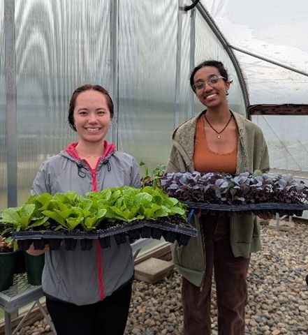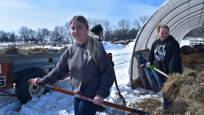 This hands-on collaboration offered students meaningful experience and practical job skills in a real-world farm setting. Two students worked closely with our Livestock Coordinator, Destiny, and our local veterinarian—learning how to care for animals through daily routines like cleaning, feeding, and administering vaccines. Meanwhile, the other students partnered with Sustainable Agriculture Coordinator, Monique, assisting with greenhouse prep and field work in anticipation of the summer crop season.