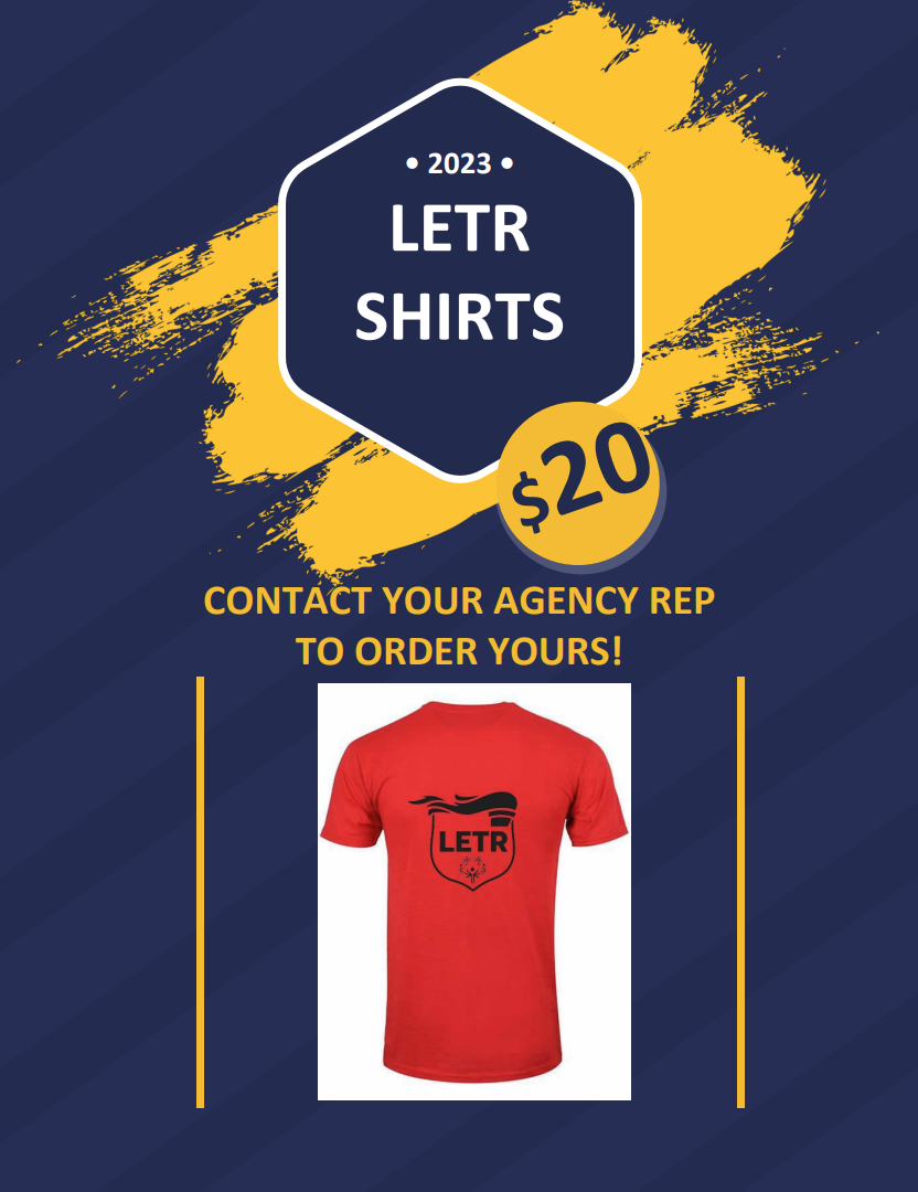 We are proud to announce that the new LETR shirts are now available, don't miss out on this opportunity - contact your agency representative today to get your 2023 LETR shirt!
