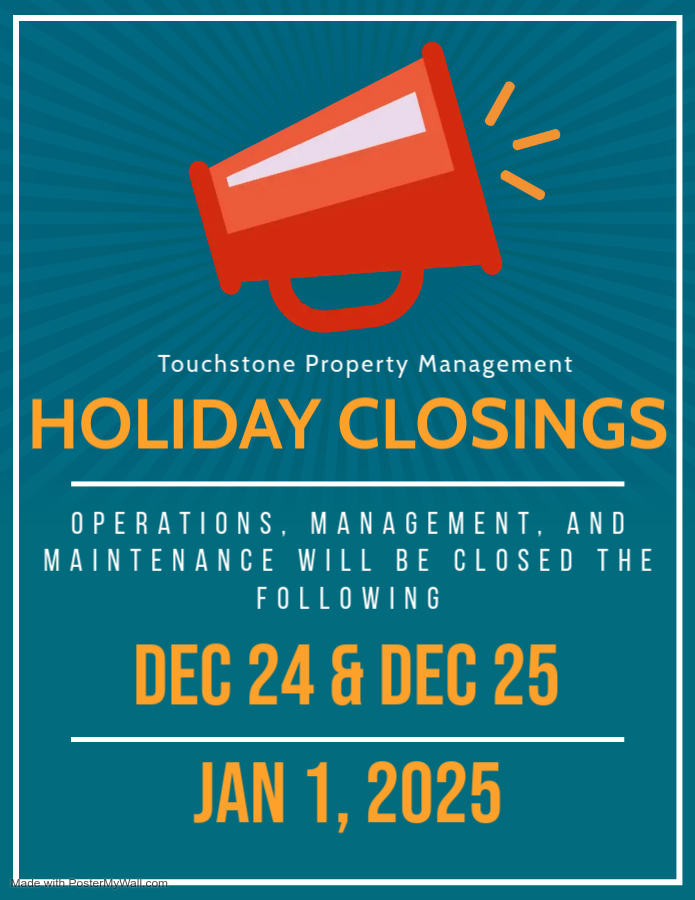 Reminder: Touchstone operations, management, and maintenance will be closed Thursday, November 28 and Friday, November 29 to allow our team time with their families.
