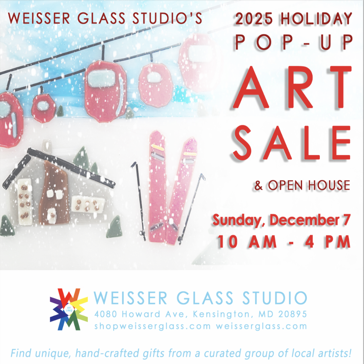 Shop for wonderful handmade gifts from a curated group of local artists. Meet the artists while enjoying light refreshments in a fun and festive atmosphere, watch live demos of ornament making over a torch, or stop by to see what we’re about!