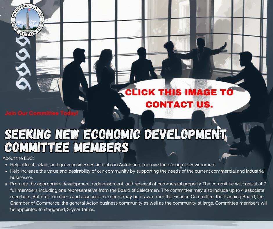 | | | 8) Economic Development Committee | | Help shape Acton’s economic future—join the Economic Development Committee! Meeting on the first Friday of each month, the committee supports a strong local economy by advising on business growth, promoting Acton, and strengthening commercial areas. Residents, business owners, and professionals are all welcome. Make an impact in your community! | | The next EDC Meeting is scheduled for Friday, July 18, 2025, 10:30-noon via Zoom. Please click here for updates/agenda/links via the homepage. | | |