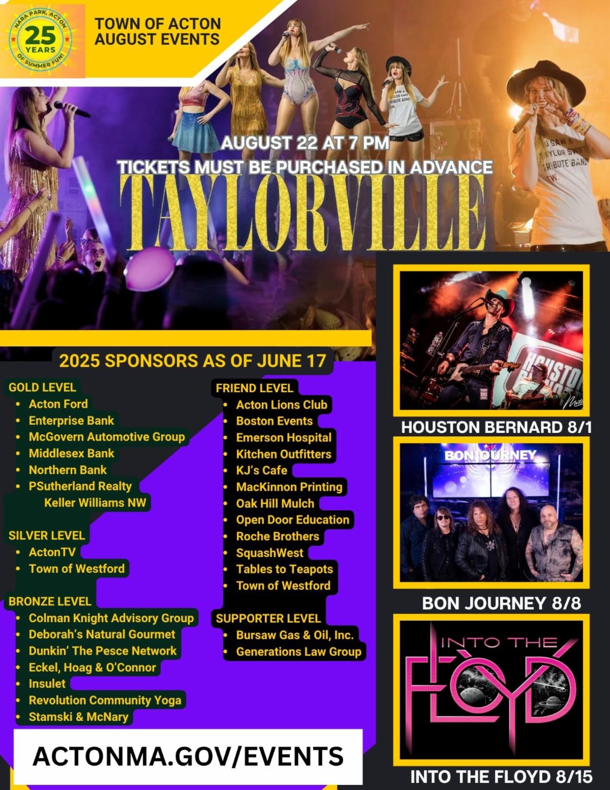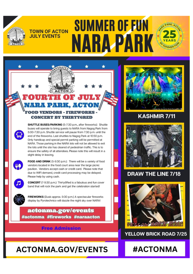 The sun is out and so is our summer event lineup! From concerts to community gatherings, the Town of Acton is hosting a variety of events for all to enjoy.