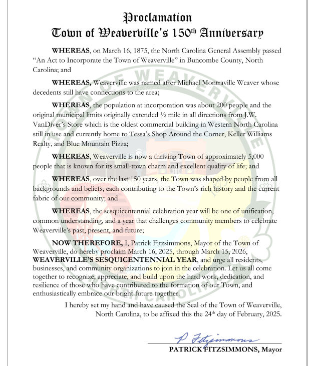 The Town of Weaverville is looking for you. If you are interested in serving on a board or committee, just complete an application, or request one from the Town Clerk’s office and return it to Town Hall. tmercer@weavervillenc.org