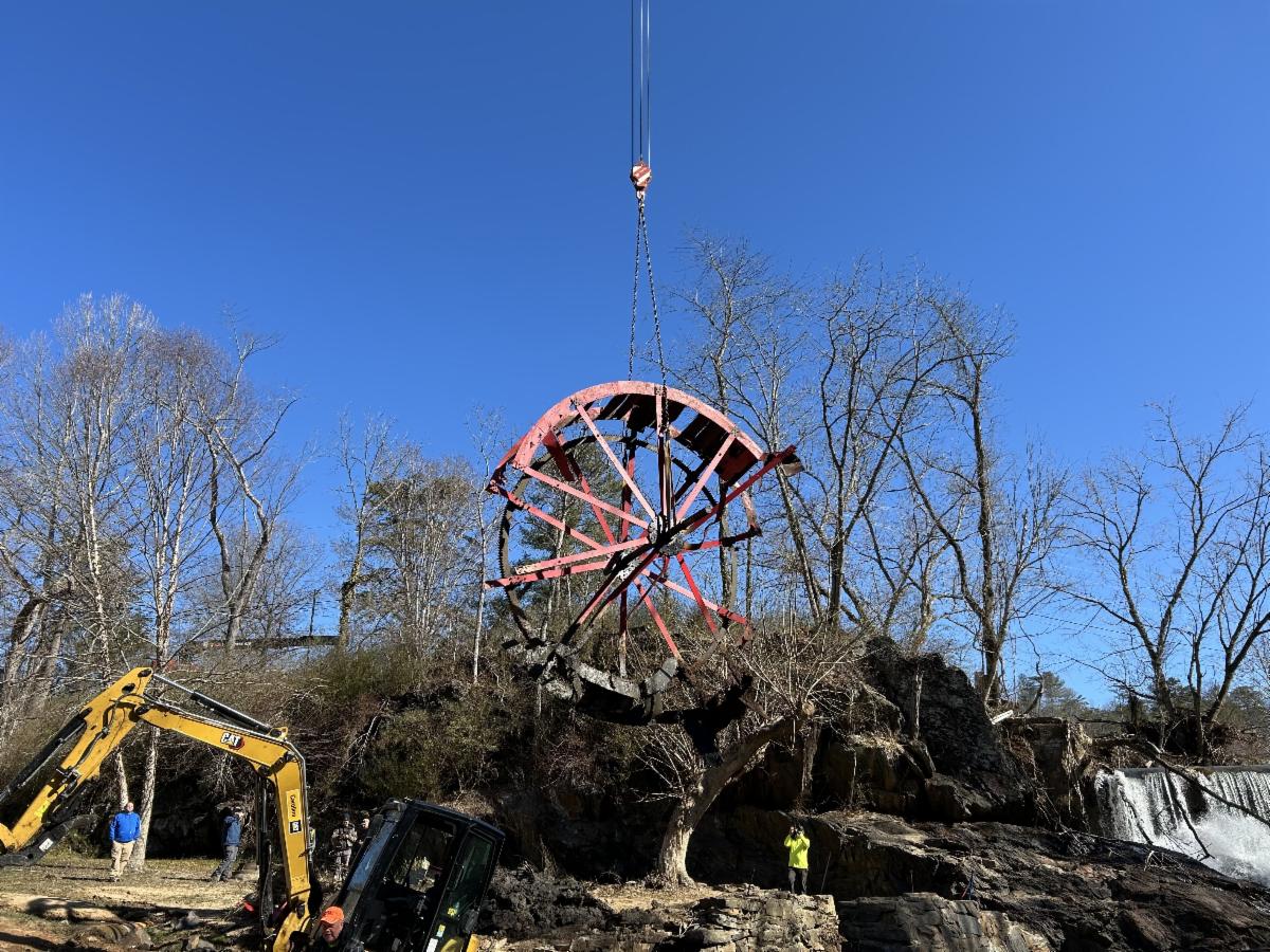 The iconic wheel was significantly damaged during the Helene storm and now repairs to the Town's water wheel is underway. The Town has found a vendor who is qualified to restore the historic marker, and we anticipate the installation of the beloved water wheel in the upcoming future! | |