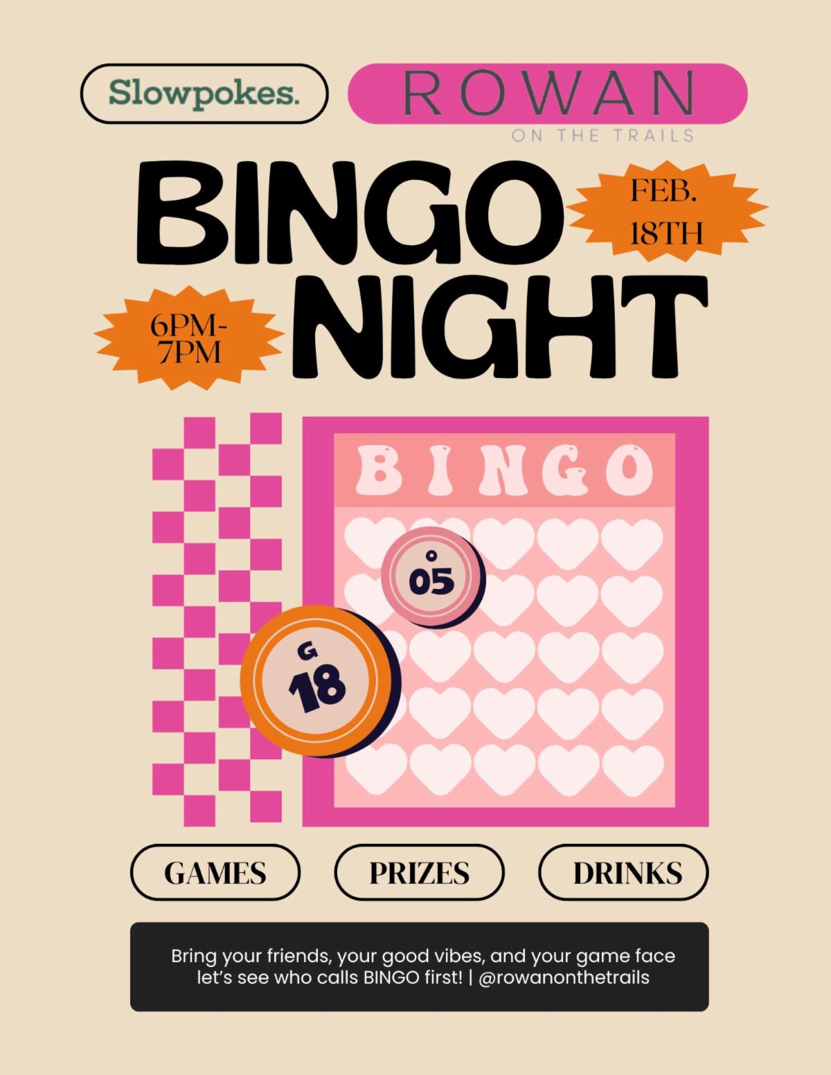 - Rowan on the Trails Bingo Night. Join the fun at Slowpokes.