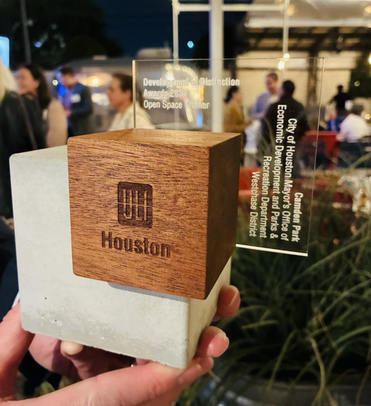 Camden Park won top honors at the prestigious ULI Houston Development of Distinction Awards, recognizing excellence in design and placemaking. The award highlights the park's success as a welcoming regional gathering space, embraced by the community and attracting an estimated 220,000 visitors annually.
