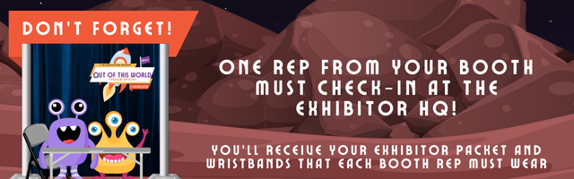 2:45pm: Mandatory Exhibitor meeting at the Cosmic Cantina (center bar).