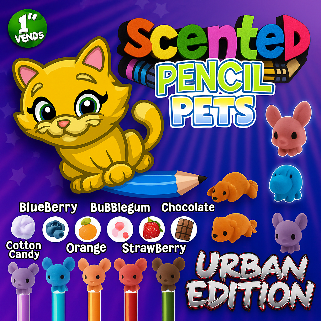 These charming little companions effortlessly fit onto pencils and pens while even serving as erasers and are wrapped in unique, eye-catching, and vibrant multi-colored capsules!