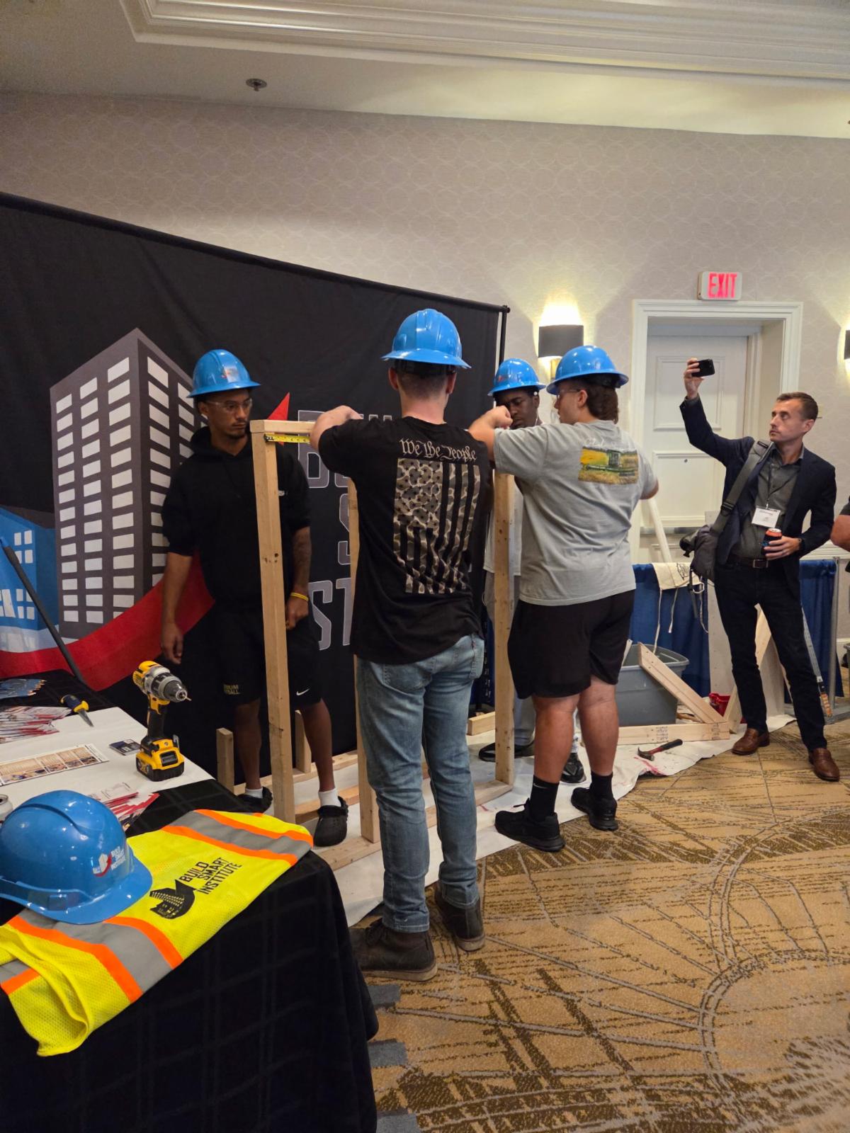 During the expo, students showcased their skills by demonstrating how to frame a wall, install an electrical box, and hang drywall.