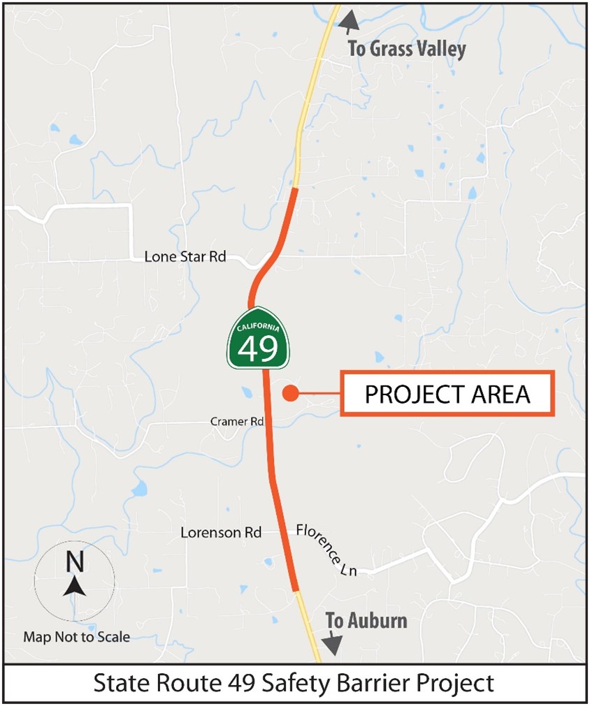 PLACER COUNTY – Caltrans is alerting motorists about an upcoming extended lane reduction along State Route 49 (SR 49) at Lone Star Road this weekend as construction continues on a $38 million safety barrier and roundabout project.
