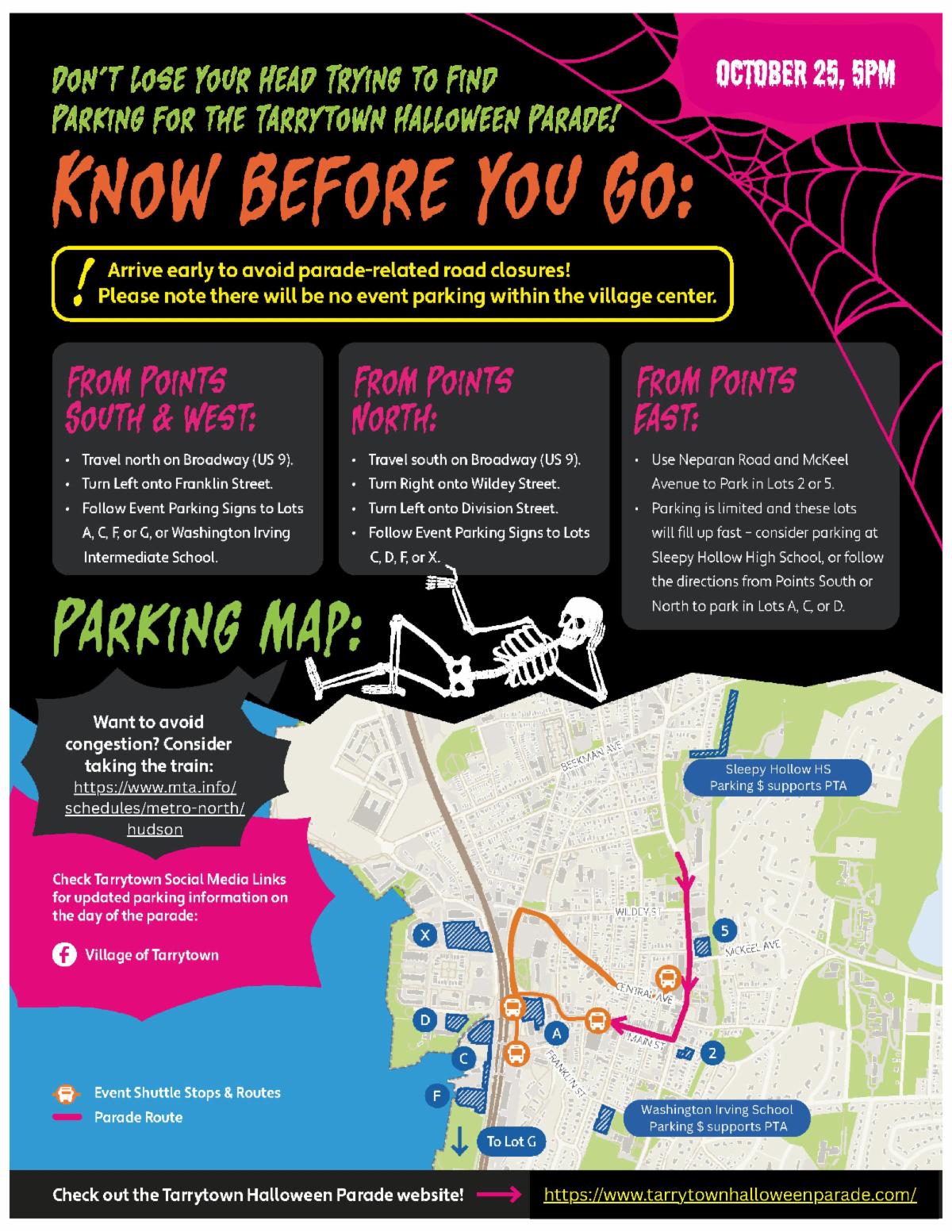 Local residents in Sleepy Hollow or Tarrytown are urged to walk to the Block Party or Hayride if they are attending.