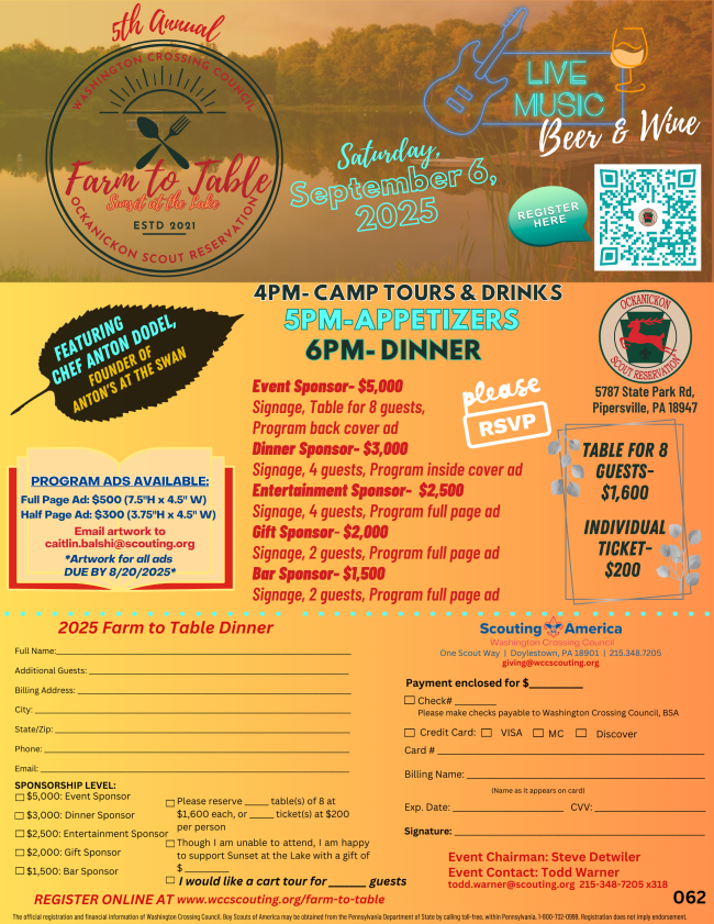 Join us for a full day of enriching program ideas and invaluable insights at the largest single training event for adult and select youth leaders in the Washington Crossing Council. This event promises to inspire and equip participants with a year worth of actionable resources. The training will be held on Saturday, November 1 at Fisher Middle School, 1325 Lower Ferry Road, Ewing, NJ 08618.