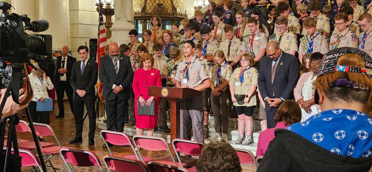 Scouting America in Pennsylvania holds an annual "Report to the Commonwealth" event in Harrisburg, where they present their annual report to state leaders. This year, the event occurred on June 9, at the PA State Capitol. Scouts, Venturers, Sea Scouts, and Cub Scouts were invited to participate and represent Scouting America at the state level. | |
