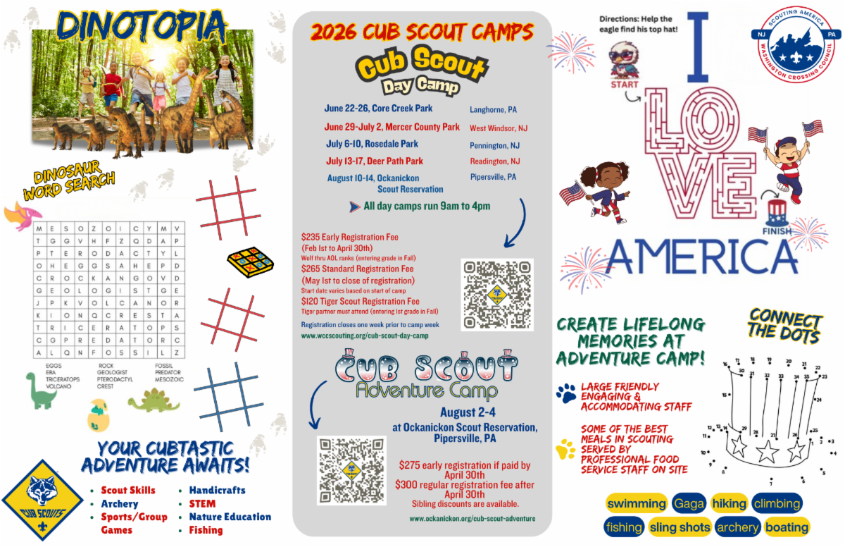Join leaders from across Washington Crossing Council at our 3rd Annual AdventureCon and discover where the adventure awaits your Scouts! From outdoor experiences to local programs and partners, you’ll see just how much fun—and opportunity—we have right in our own backyard. AdventureCon connects units with businesses and organizations ready to help you deliver unforgettable experiences all year long.
