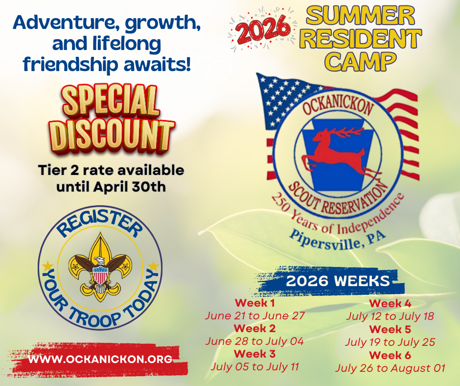 The individual camper program allows Scouts to participate in Ockanickon’s program when their troop is not at camp. This program is perfect for Scouts who cannot attend with their unit or for Scouts that wish to come to camp again to earn additional badges or complete partially completed merit badges. Individual campers are hosted by another unit in camp; the camper becomes part of the host troop for that week – a great opportunity to meet Scouts from around the region. Over 80 different merit badges will be offered at OSR this summer!