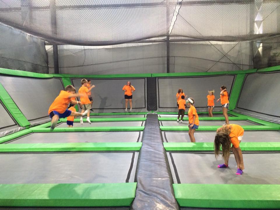 This trampoline park was manufactured by Fun Spot and includes 3 dodgeball courts, 2 slam dunk lanes, and a foam pit. It is already disassembled and located in OH.