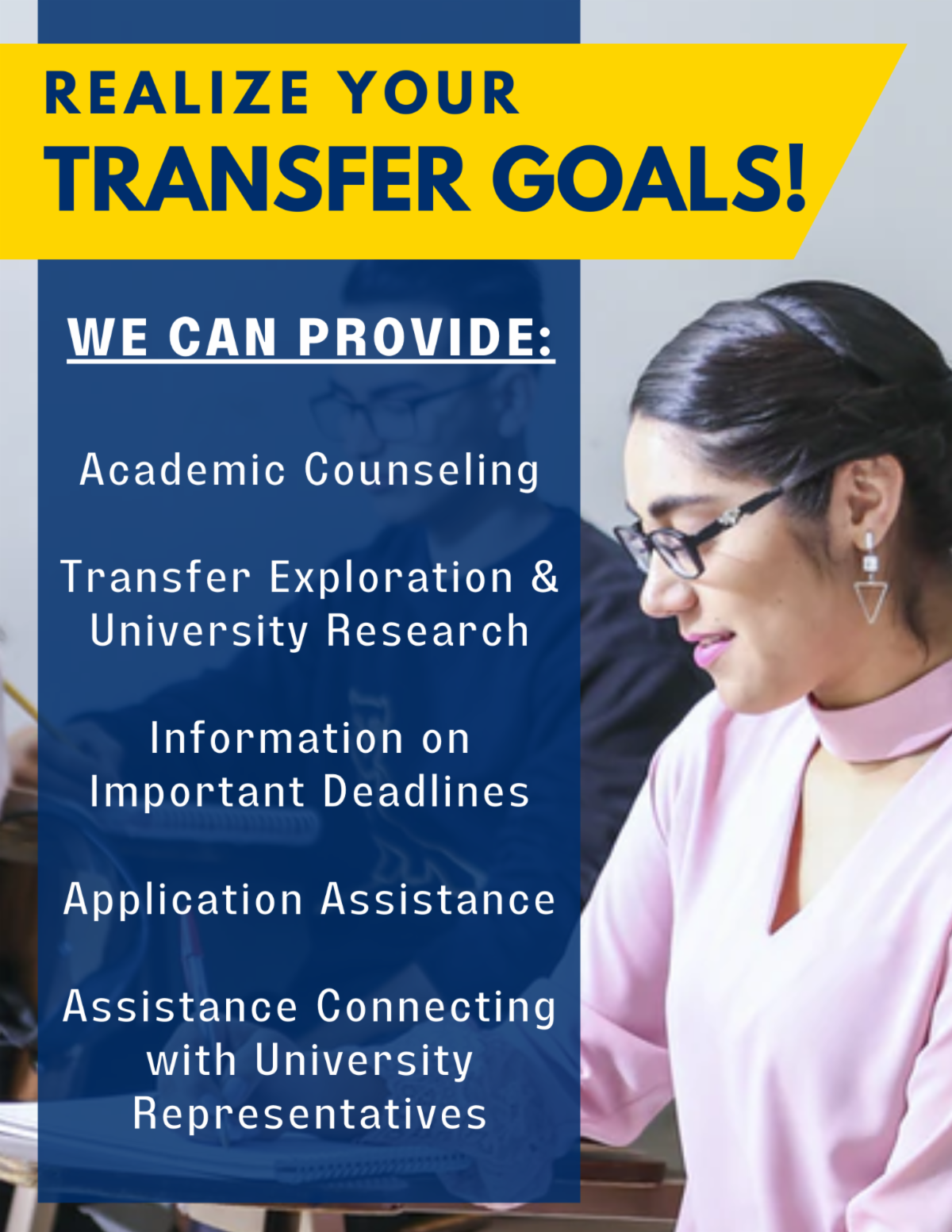 You are cordially invited to the Transfer Center Open House on September 1, 2022 from 11 a.m.-1 p.m. Check out our newly remodeled center in Building 200, Room 212! | |