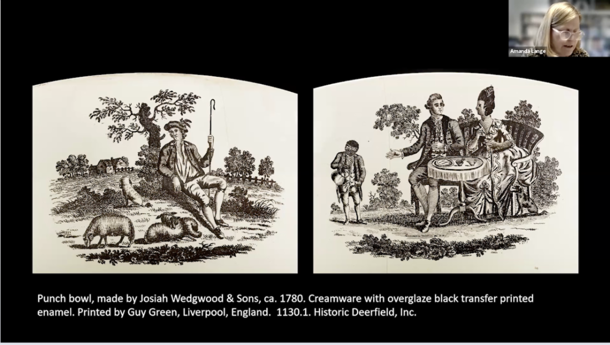 Amanda Lange, Director of the Curatorial Department and Curator of Historic Interiors, Historic Deerfield, will share with us her research on "Fables, Farmers, and Flirts: Landscape Designs on Early British Transferware."