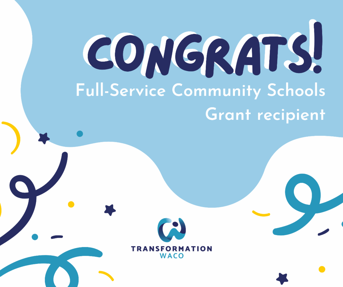 I’m excited to share that the U.S. Department of Education is awarding Transformation Waco a $2.5 million Full-Service Community Schools grant! The grant will enable us to expand our existing community schools model and establish new programs to increase students’ and families’ access to social, emotional, mental health and academic support.