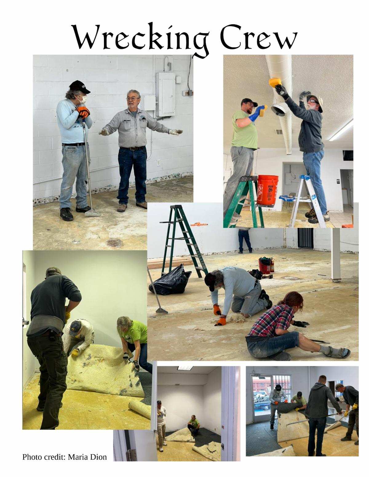 The old carpeting is finally gone, and no one is happier than construction chief Bob Duvall. Bob has spent some long, hard days pulling, scraping and sanding to remove carpeting that appears to have been there since biblical times. A personal hooray and much gratitude to Bob, and to those who showed up to help.