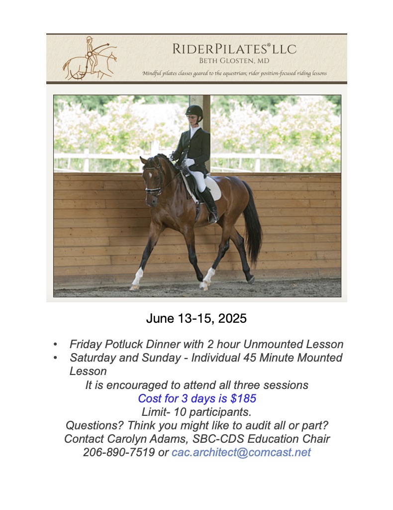 Please note that private clinics and schooling shows are not sponsored by SBC CDS, but are shared as a courtesy and to benefit our members. If you are hosting a clinic or schooling show in or near Santa Barbara County and would like us to include them in our next newsletter, please provide detailed information including contact information to nicole.silverliningpr@gmail.com no later than July 31, 2025. This is for events happening after August 10, 2025, the publishing date of our next newsletter. Late or incomplete submissions can not be accepted.