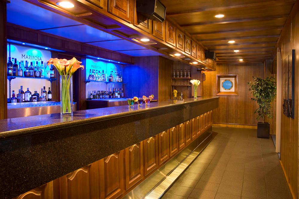 The vessel is arranged with passenger boarding on the main deck aft of amidships port. The main deck is arranged with the dance floor, stage and entertainment center forward, dining aft of the dance floor, the servery starboard aft of amidships, a buffet along centerline with a beverage bar aft and fully aft are the with a male & female heads. A stairway serving the main and 01 decks is located port and starboard of the main deck beverage bar. The 01 deck is arranged with an entertainment center, stage and dance floor forward, open dining aft of the dance floor, the servery amidships starboard with the beverage bar on port aft of amidships, a male and female head fully aft. The 01 deck offers open air passage around the vessel. The 02 or Bridge Deck offers open air seating and access to the wheelhouse with a stairway aft on port and starboard providing access between the 01 and 02 decks.