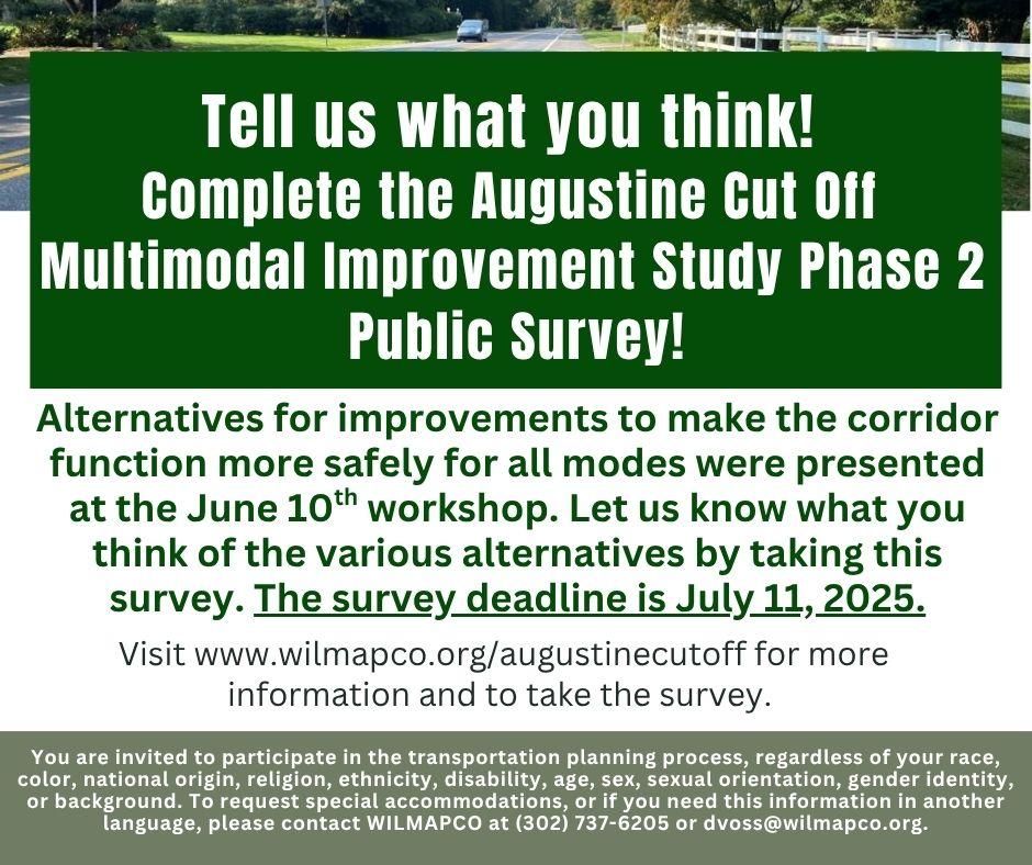 You are invited to participate in the transportation planning process, regardless of your race, color, national origin (including limited English proficiency), religion, creed, gender, ancestry, ethnicity, disability, age, sex, sexual orientation, gender identity or expression, veteran’s status, or background. To request special accommodations, or if you need this information in another language, please contact WILMAPCO at (302) 737-6205 or dvoss@wilmapco.org.