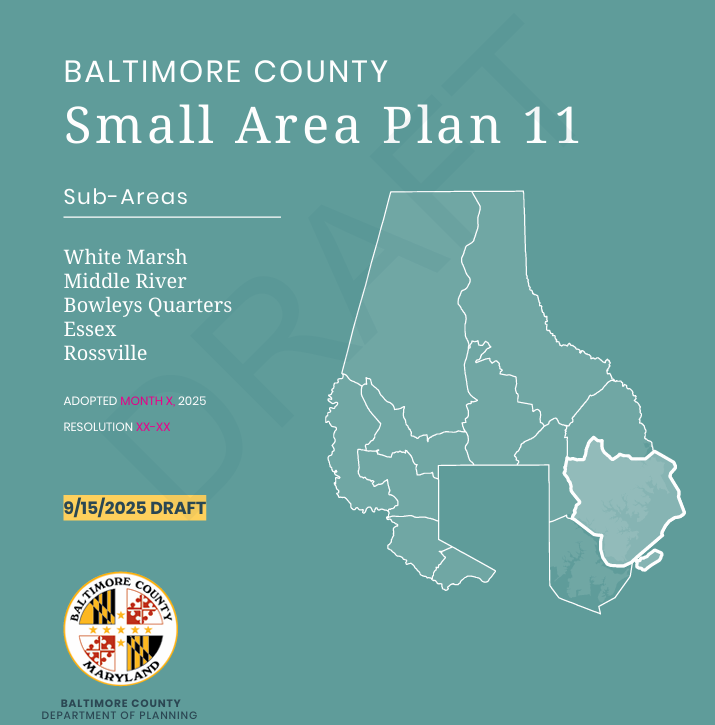 Community voices have been heard. After months of collaboration and input from residents, the Small Area Plan 11 draft report- covering White Marsh, Middle River, Bowleys Quarters, Essex, and Rossville- is now complete and moving forward to the Planning Board.