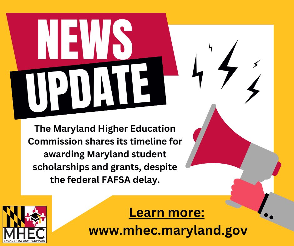 Many students and families have reached out with questions about delayed scholarship payments. Here’s the latest update from the Maryland Higher Education Commission (MHEC):