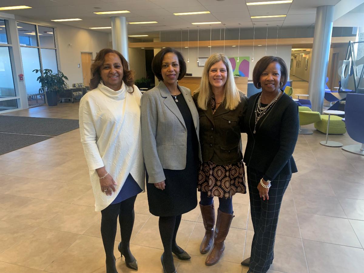 A $250,000 commitment from Meisel & Pesses Family Foundation provides immediate use dollars to stock the Eastern Campus Food Pantry upon renovation. The gift also establishes an endowed fund to generate income for future operations. The Meisel & Pesses Family Foundation has supported Tri-C students, primarily through scholarships, since 2005, helping to reduce the financial burden for more than 1,100 students. The Meisel Family Endowed Scholarship Fund was established in 2017. Pictured above with Dr. Michael Baston are (from left) Tri-C Foundation board chairperson Pat Pastore, Alan and Barbara Rosskamm, and Peter Meisel.