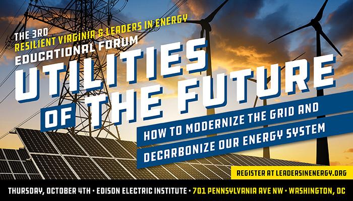 Leaders in Energy will conduct its "Utilities of the Future" Educational Forum at the Edison Electric Institute on Thursday, October 4th, 5:30 – 8:30 pm. Topics include how the electric grid can be a key driver in decarbonizing our energy system as new technologies and policies create pathways to a new paradigm for utilities. Our event partner is Resilient Virginia and our host is the Edison Electric Institute.