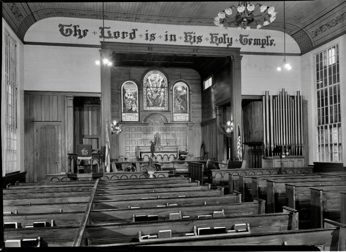 | | On May 2, come learn the history behind the two stained-glass windows flanking the Ascension window, installed in 1921, and other engaging facts from our docents in period dress. (Historic American Buildings Survey photograph, 1933) | | |