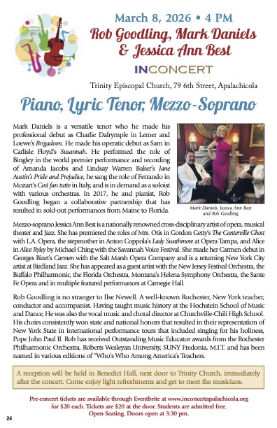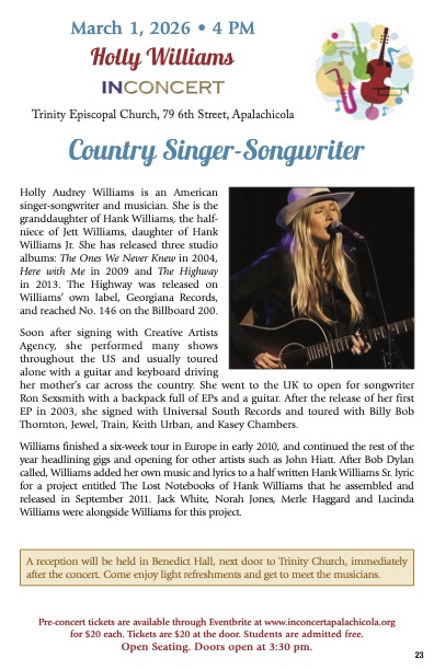 - March 28 at 6:00 PM – Trinity Episcopal Church Apalachicola