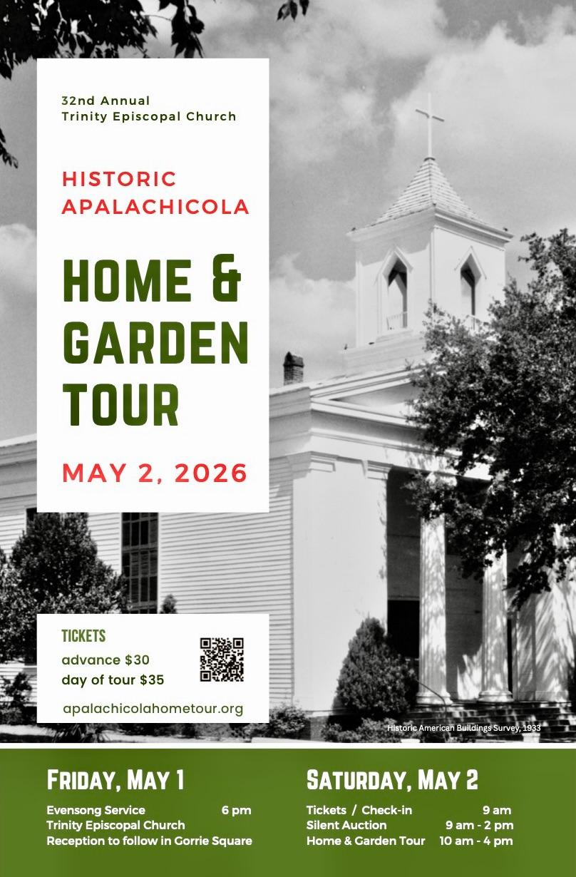Tickets are available now at ApalachicolaHomeTour.org. You may also support this important ministry by joining the Trinity Pillar Program or volunteering for the Tour of Homes.