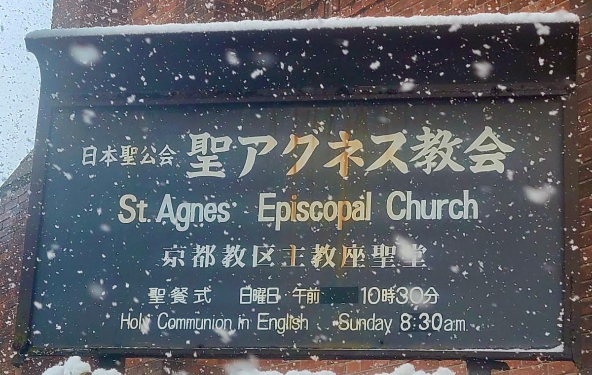 In Kyoto, on a snowy Fifth Sunday after the Epiphany, we attended the 8:30 am English service at St. Agnes Anglican International Church, the cathedral of the Diocese of Kyoto. Again, we had the privilege of worshiping with our brothers and sisters in Christ. Those in attendance were an interesting mix of English-speaking Japanese and expats from the States, the U.K., and Germany. The group was rather small, so coffee hour gave us the opportunity to visit with many in attendance.